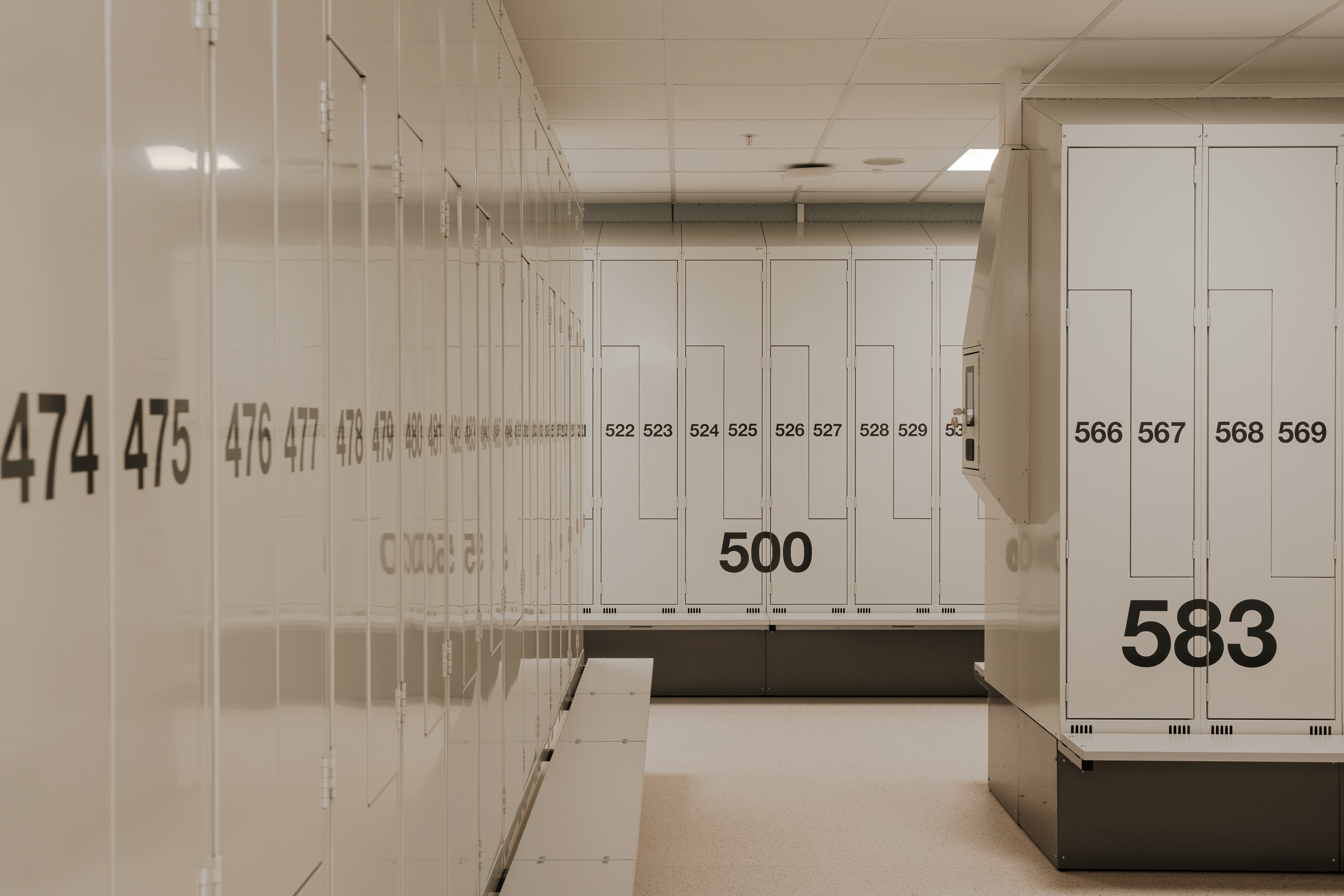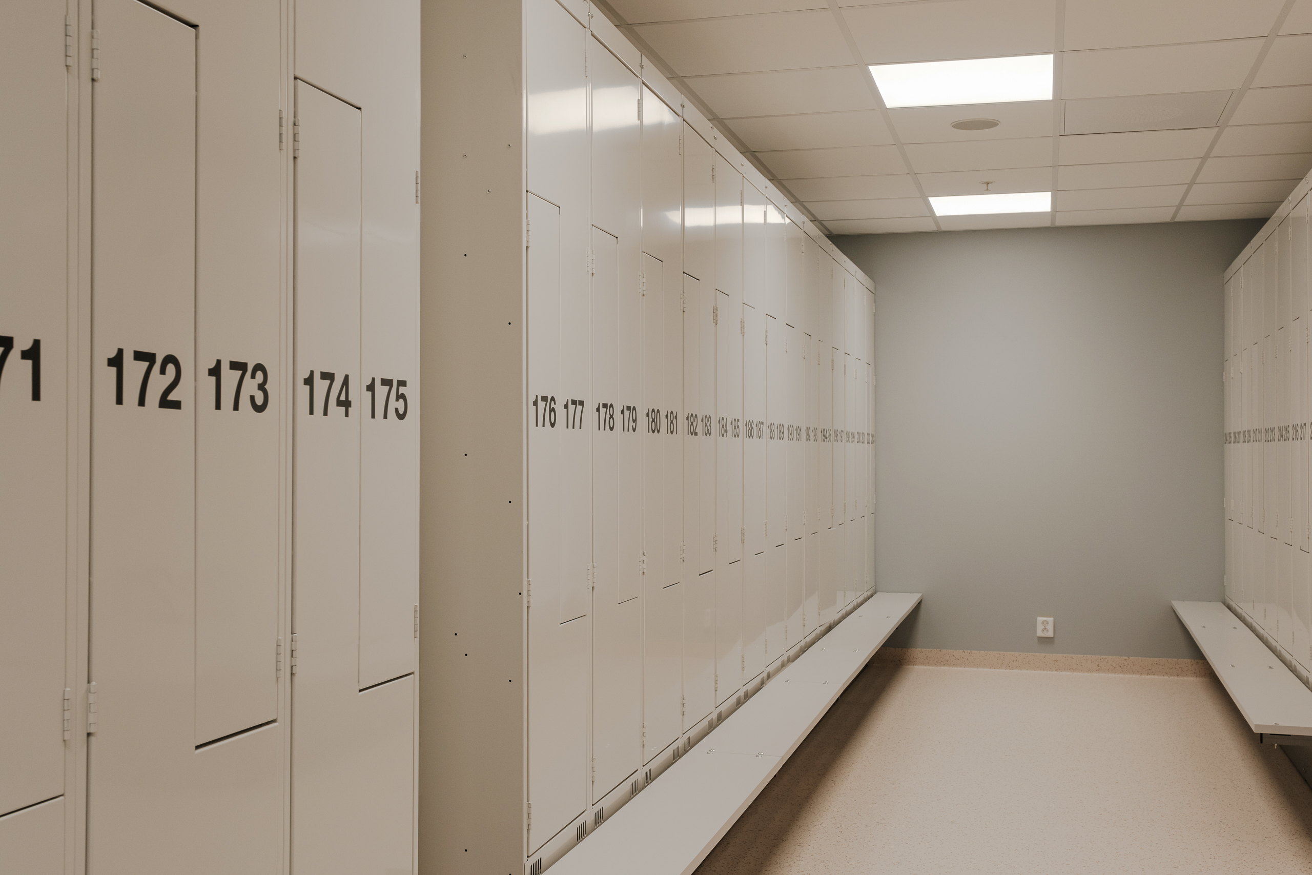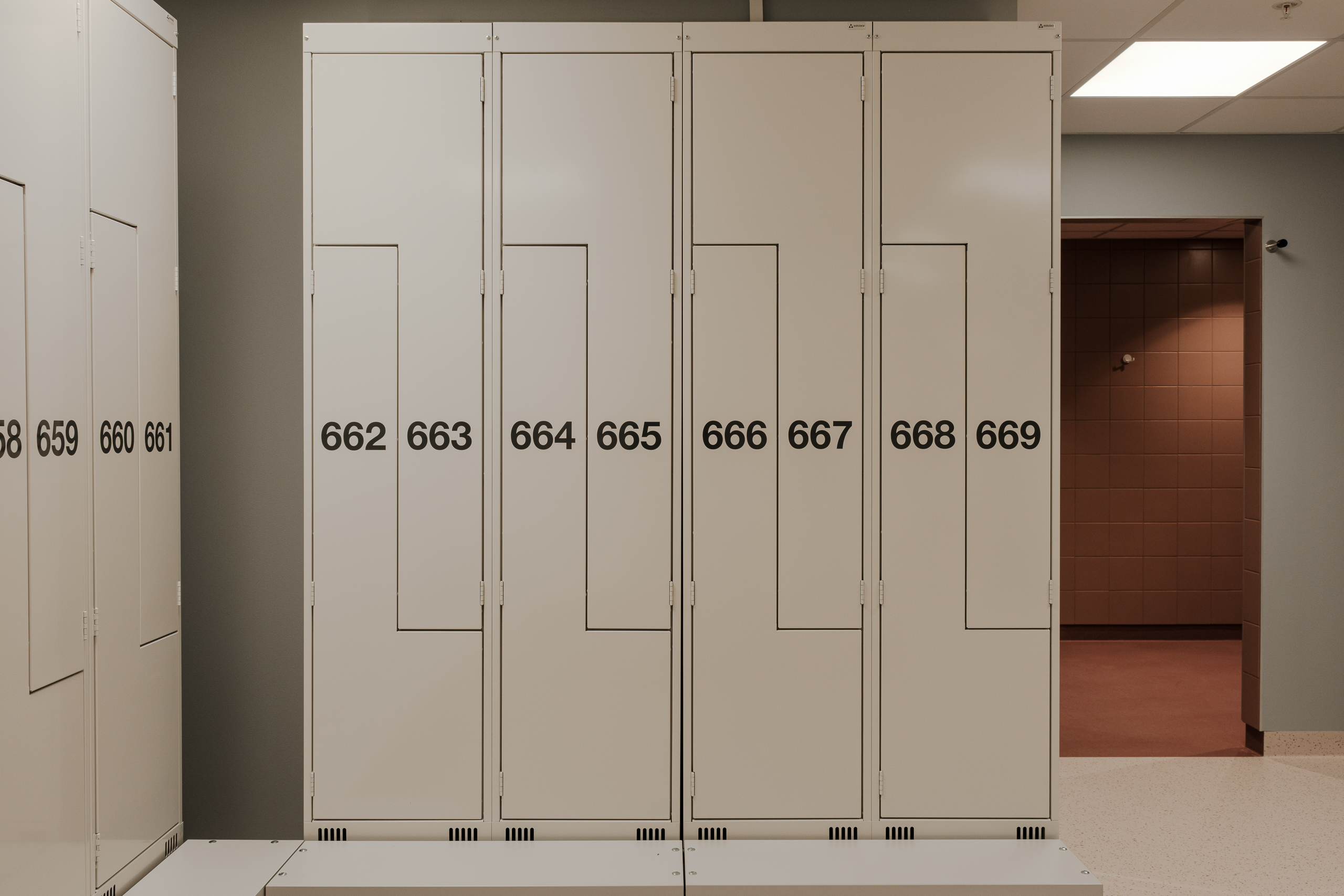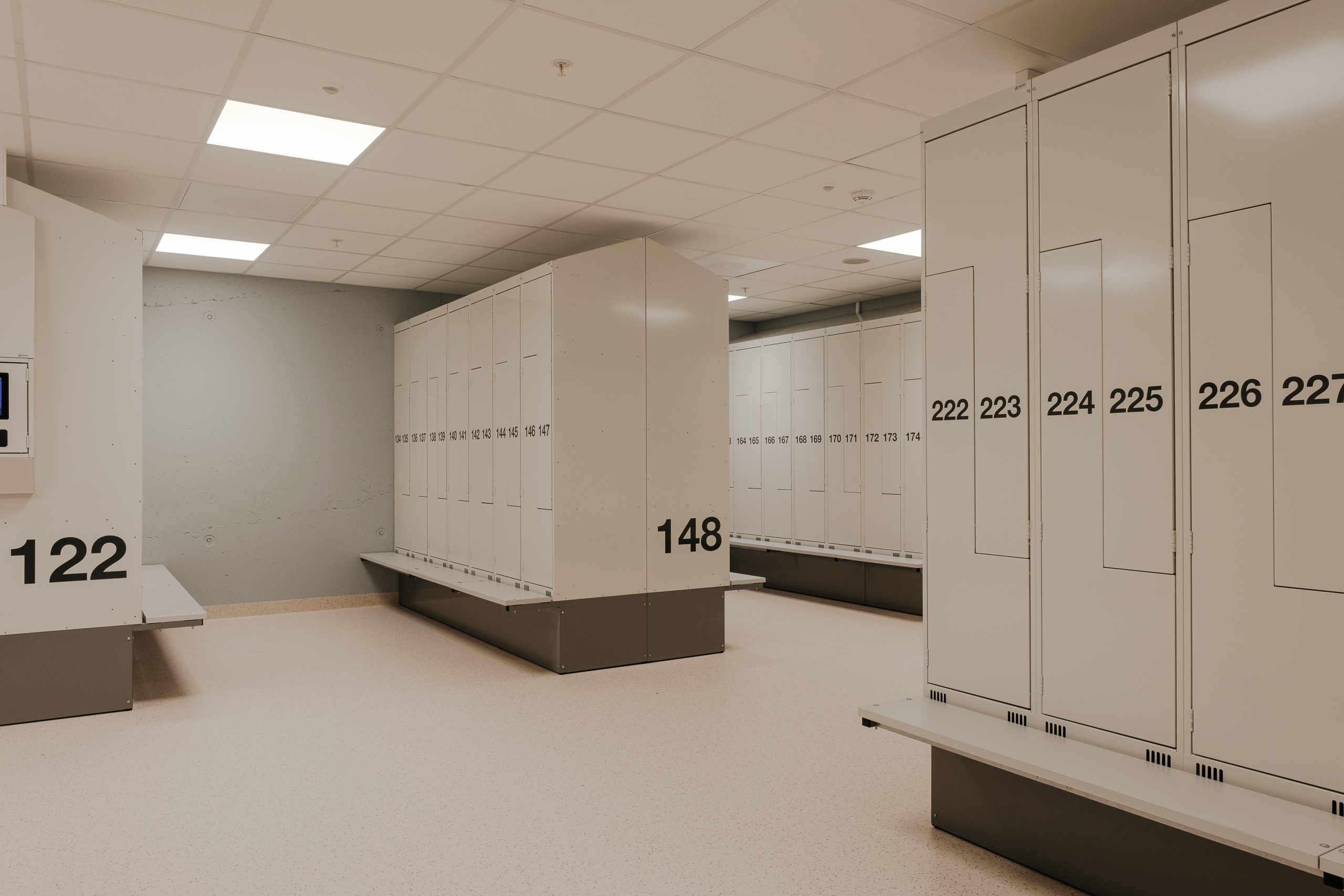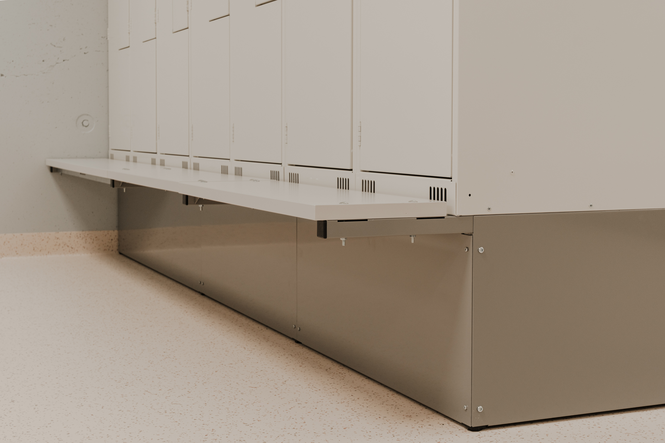 Ved Akershus universitetssykehus (Ahus) har Eskoleia levert en komplett og fremtidsrettet garderobeløsning med Z-skap garderobeskap, skoskap og dynamisk låsesystem fra Vecos med spesialutviklede terminaler.