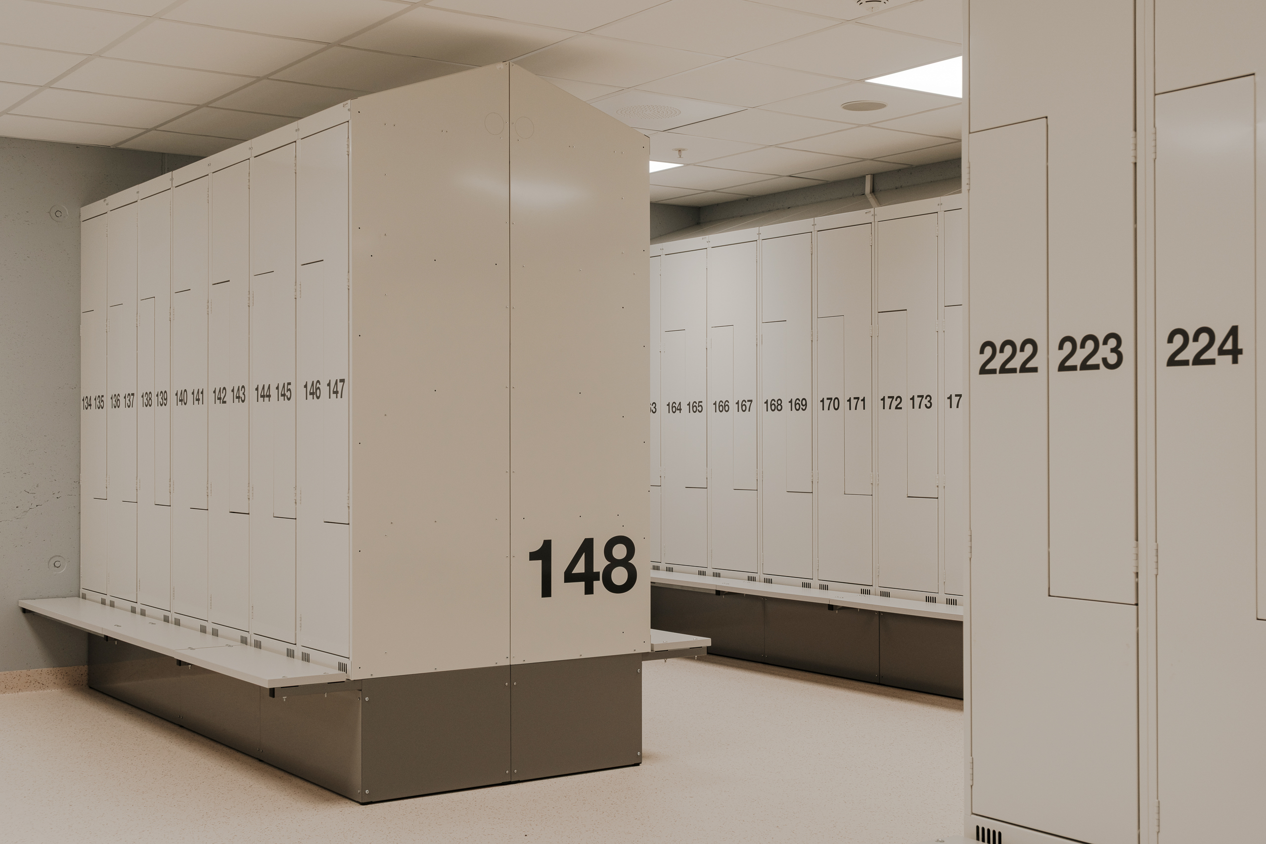 Det dynamiske låsesystemet gir fleksibel bruk av skapene og reduserer behovet for faste plasser. Resultatet er en moderne, digital og driftssikker garderobeløsning tilpasset et stort sykehusmiljø.
